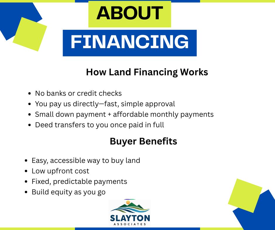 Get full details on how our EZ financing works at this link, and buy land today!